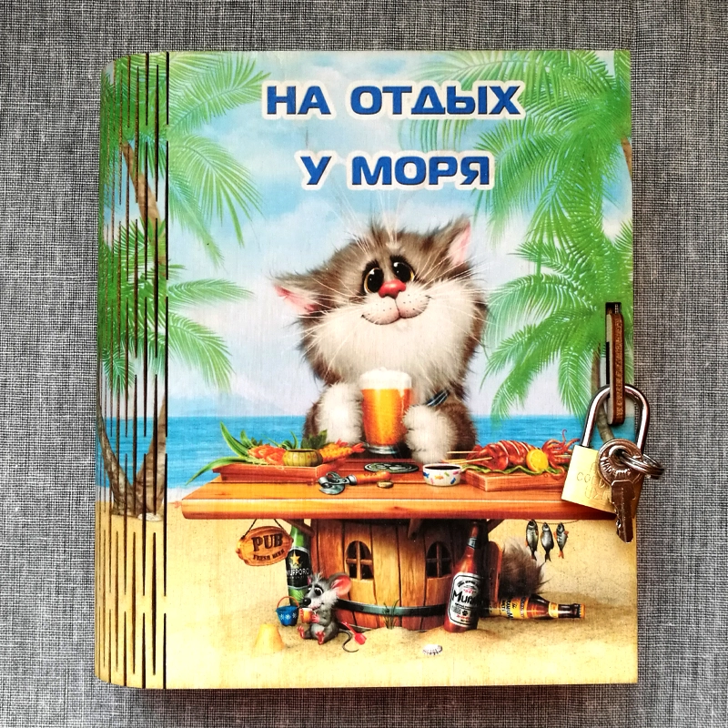 Копилка-книжка из дерева цветная с железным замком "На отдых у моря"