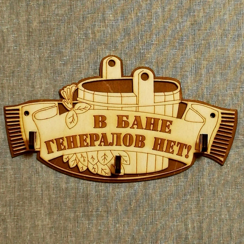 ПБ51 Вешалка в баню на 3 крючка "В бане генералов нет!"