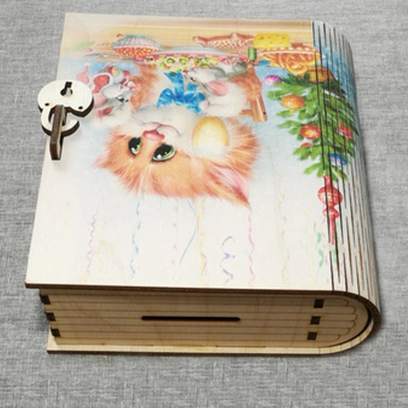 Копилка книжка цветная с деревянным замком