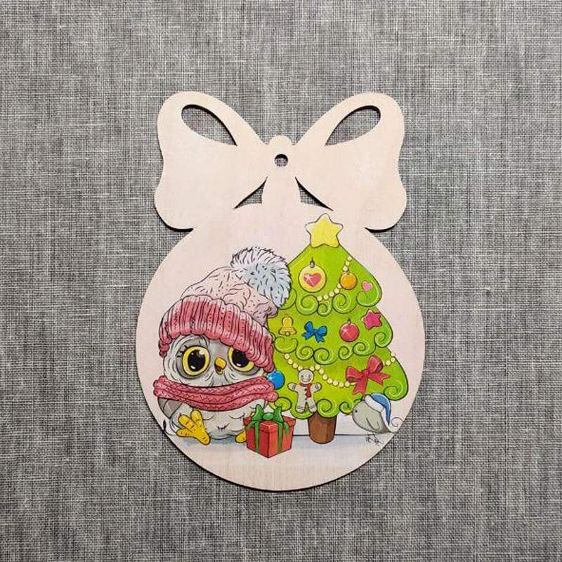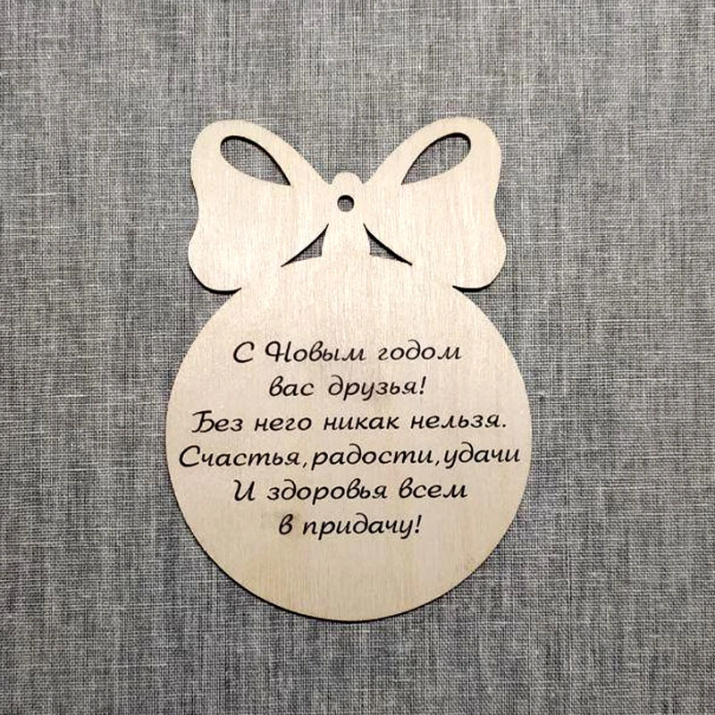 Новогодняя игрушка цветная с пожеланием из дерева.