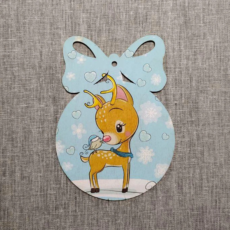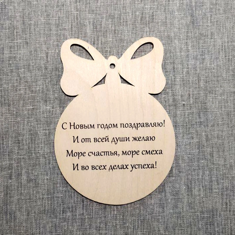 Новогодняя игрушка цветная с пожеланием из дерева.