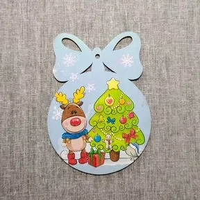 Новогодняя игрушка цветная с пожеланием из дерева.