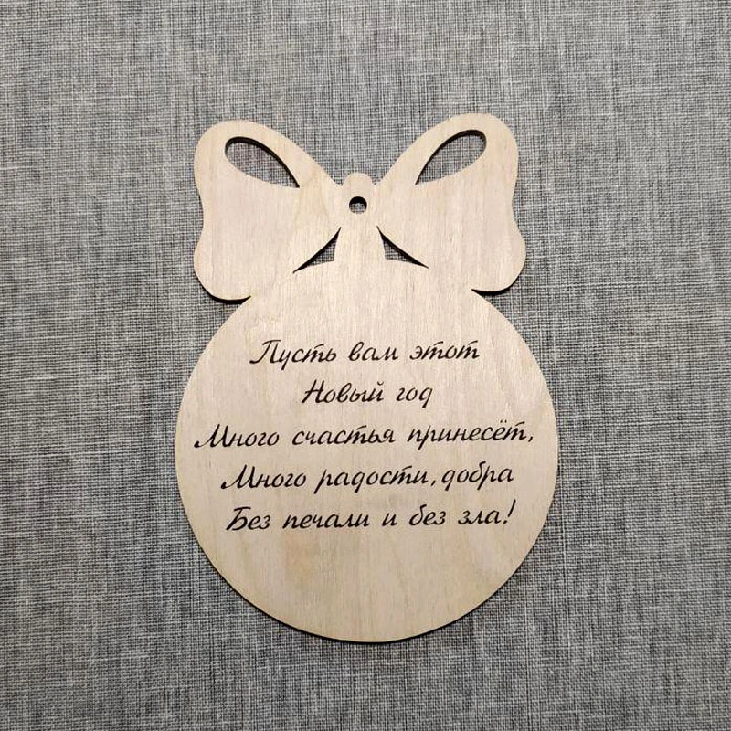 Новогодняя игрушка цветная с пожеланием из дерева.