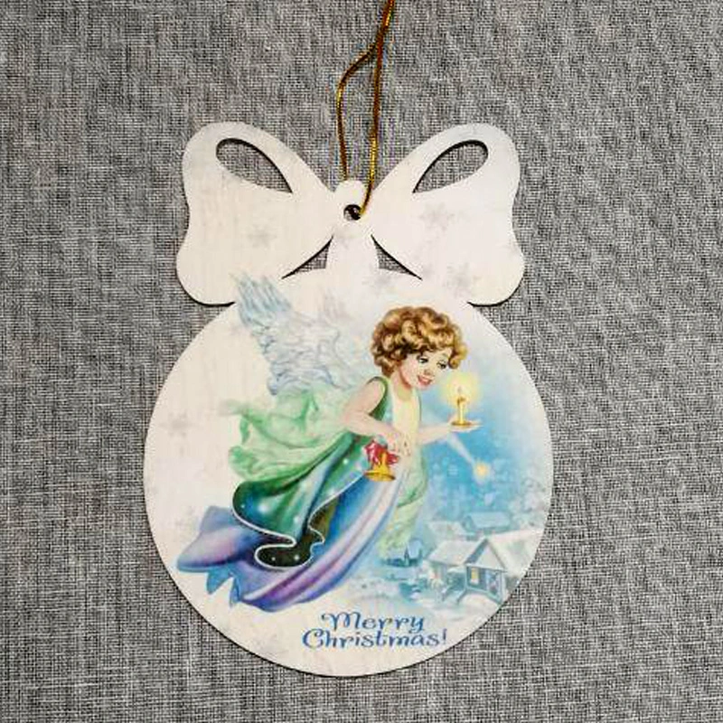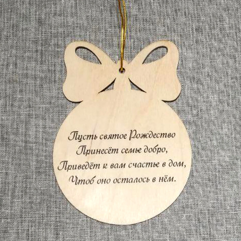 Новогодняя игрушка цветная с пожеланием из дерева.