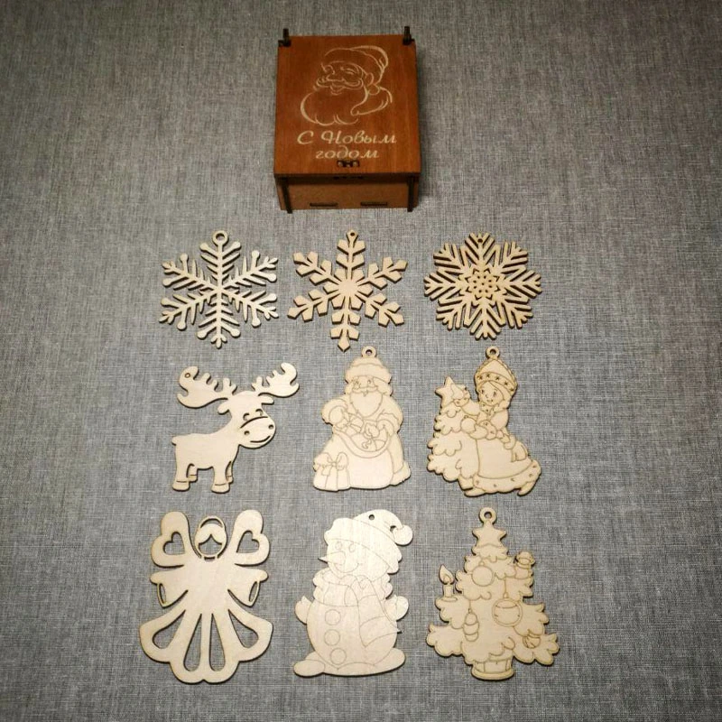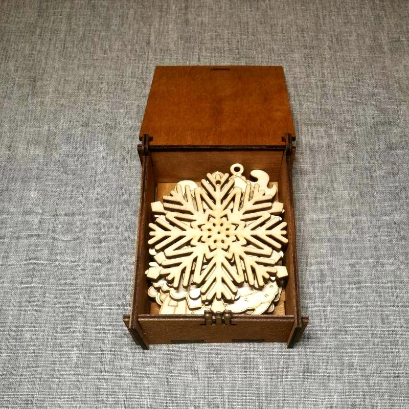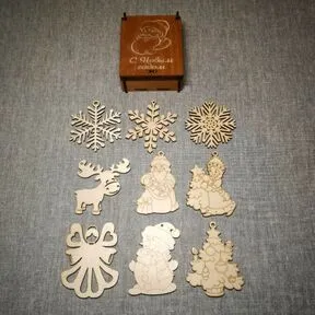Новогодние игрушки в подарочной коробочке из дерева.