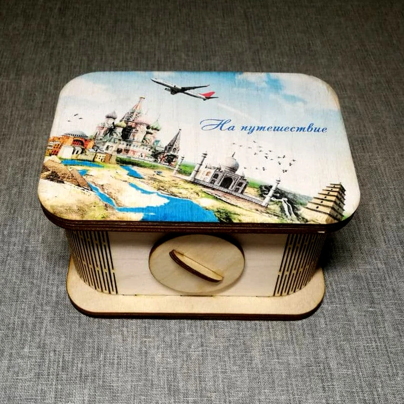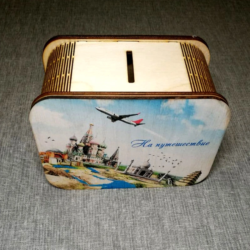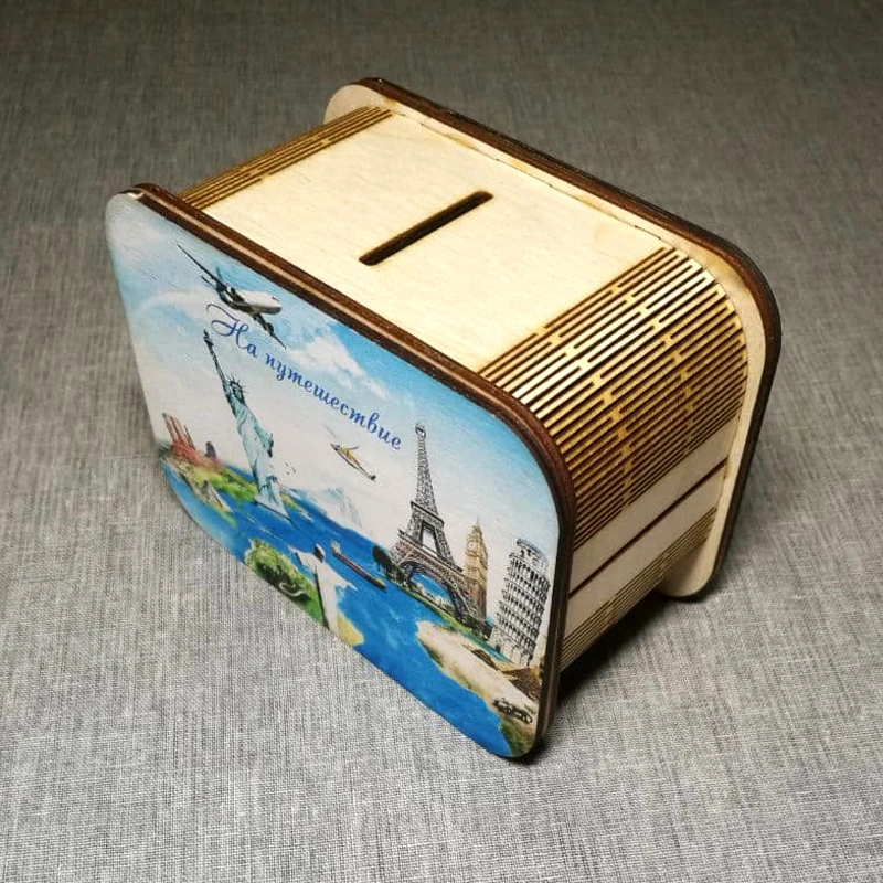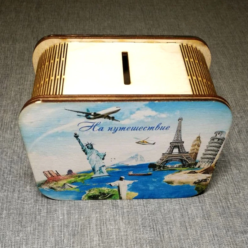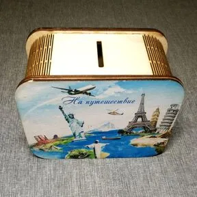 Копилка цветная из дерева "На путешествие".
