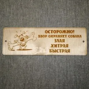 Табличка из дерева "Осторожно! Двор охраняет собака злая хитрая быстрая"