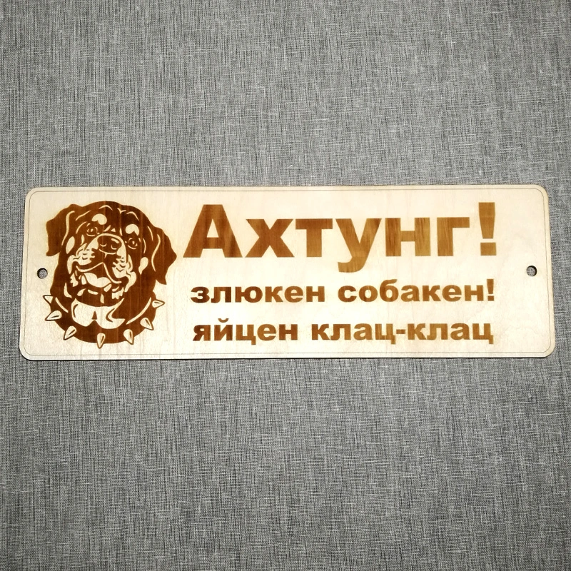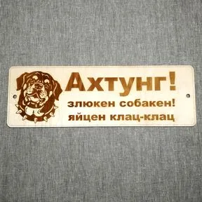 Табличка из дерева "Ахтунг! Злюкен собакен! Яйцен клац-клац"
