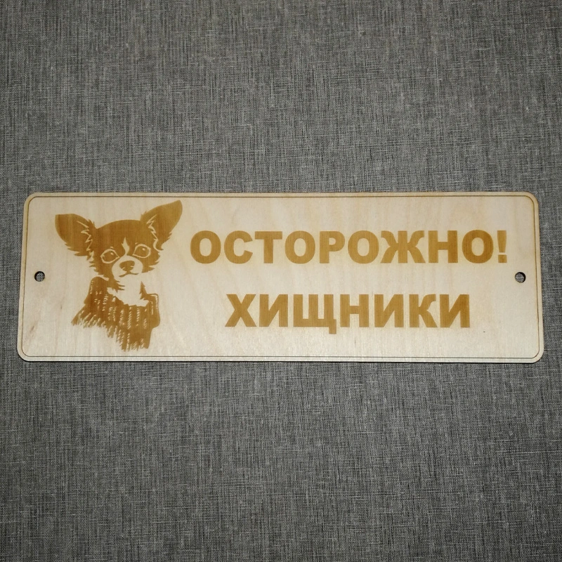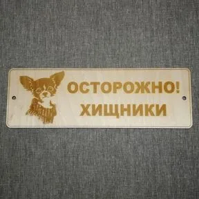 Табличка из дерева "Осторожно! Хищники"