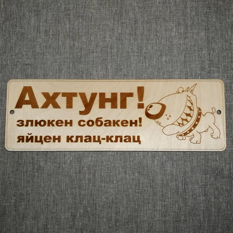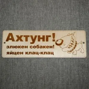 Табличка из дерева "Ахтунг! Злюкен собакен! Яйцен клац-клац"