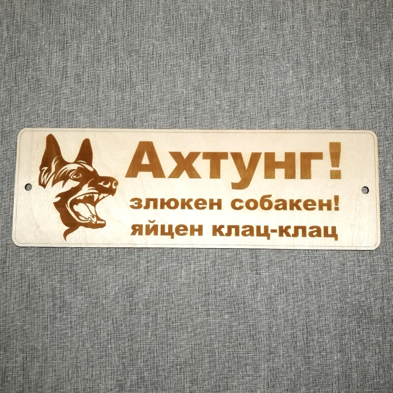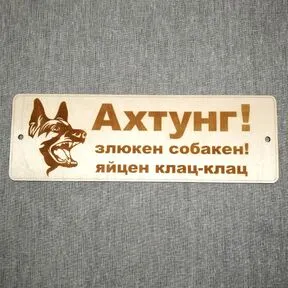 Табличка из дерева "Ахтунг! Злюкен собакен! Яйцен клац-клац"