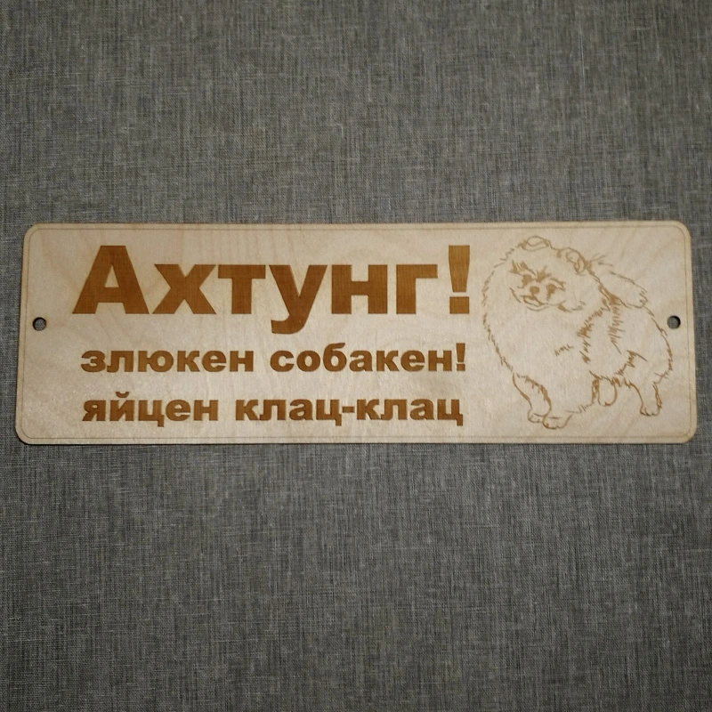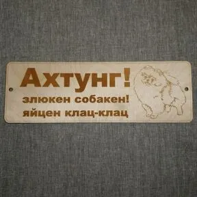 Табличка из дерева "Ахтунг! Злюкен собакен! Яйцен клац-клац"