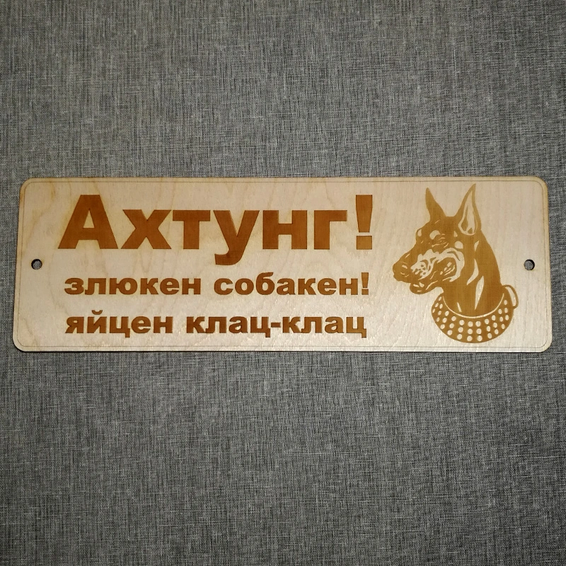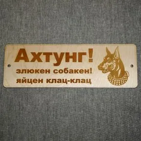Табличка из дерева "Ахтунг! Злюкен собакен! Яйцен клац-клац"