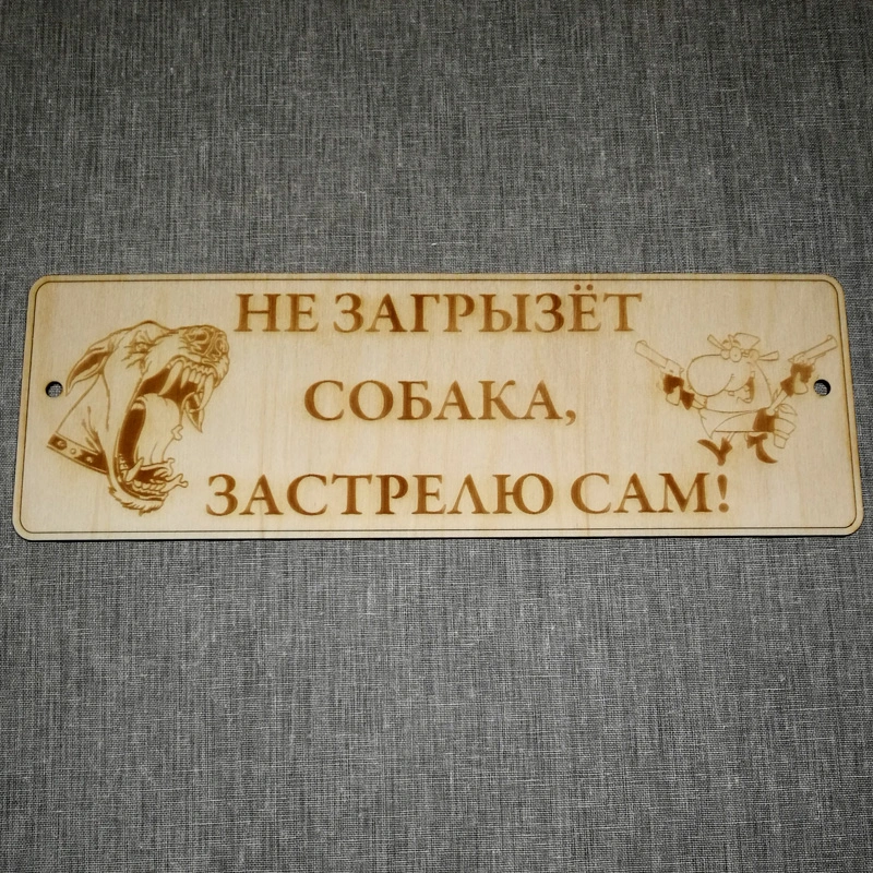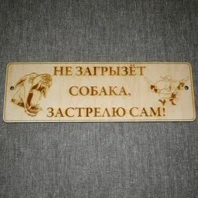 Табличка из дерева "Не загрызёт собака, застрелю сам!"