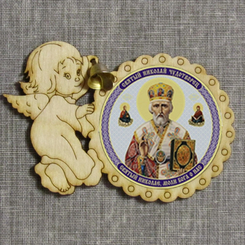 магнит из дерева с колокольчиком