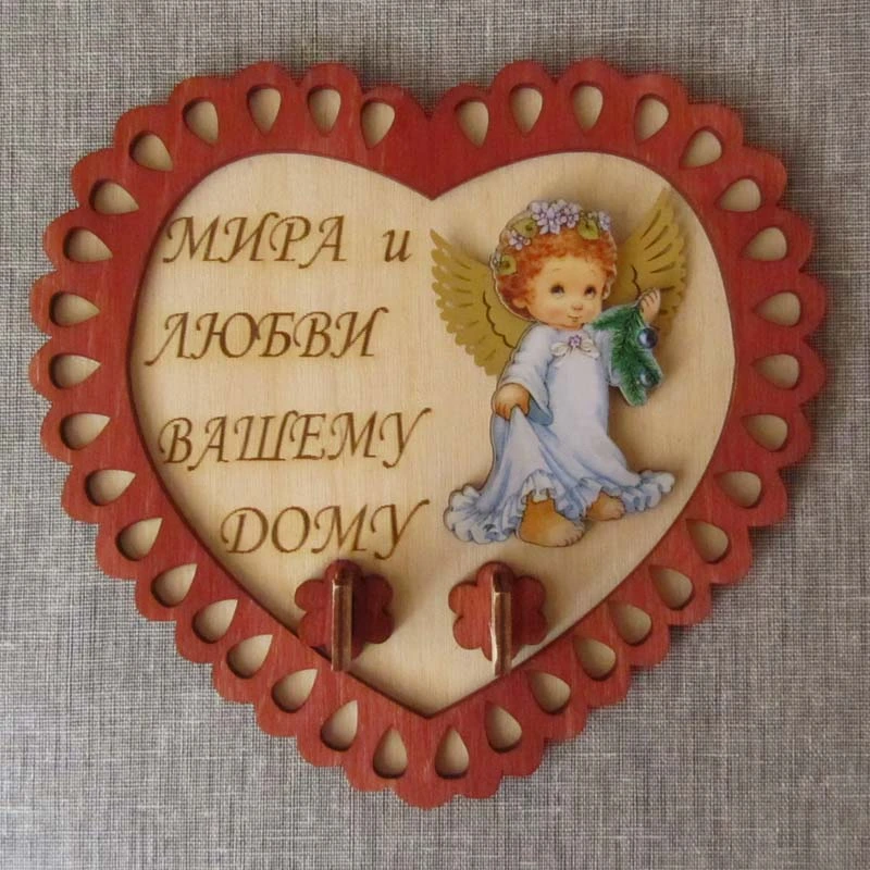 К45 Ключница из дерева с двумя крючками "Мира и любви вашему дому"