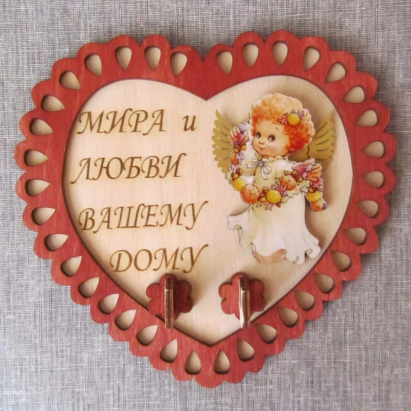 К46 Ключница из дерева с двумя крючками "Мира и любви вашему дому"