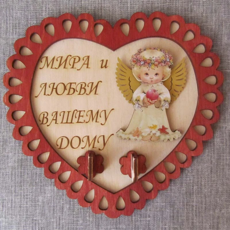 К48 Ключница из дерева с двумя крючками "Мира и любви вашему дому"