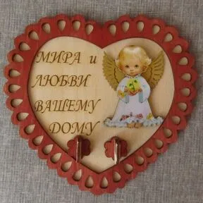 К53 Ключница из дерева с двумя крючками "Мира и любви вашему дому"
