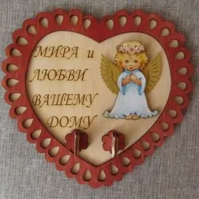 К55 Ключница из дерева с двумя крючками "Мира и любви вашему дому"