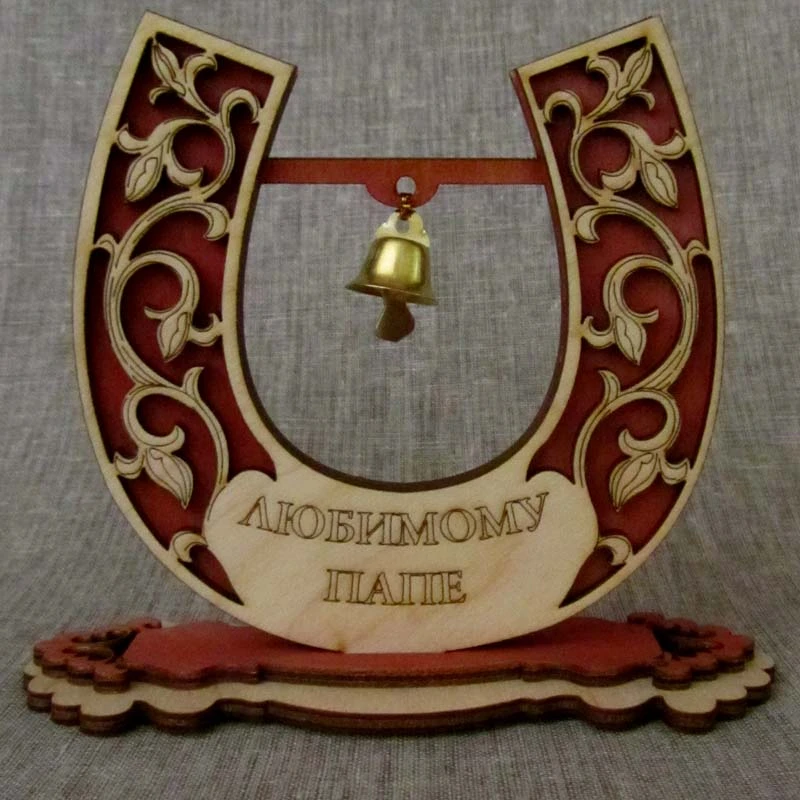 Б73 Подкова на подставке двухсторонняя "Любимому папе" - "На счастье", размер подковы 10*10 (см)