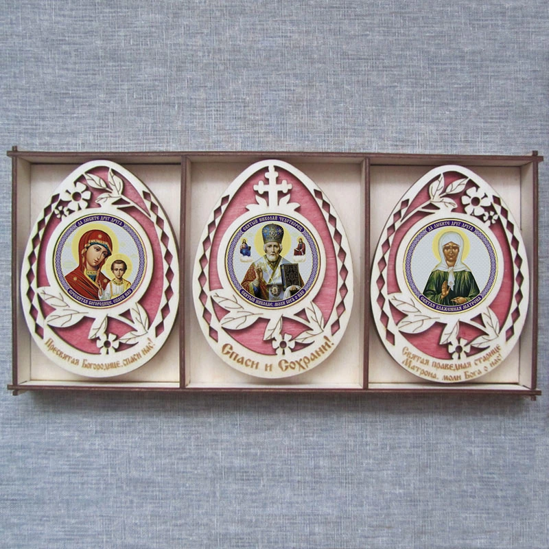 - 3 яица + подставки под них, размер яица 8,5*11,5 (см).