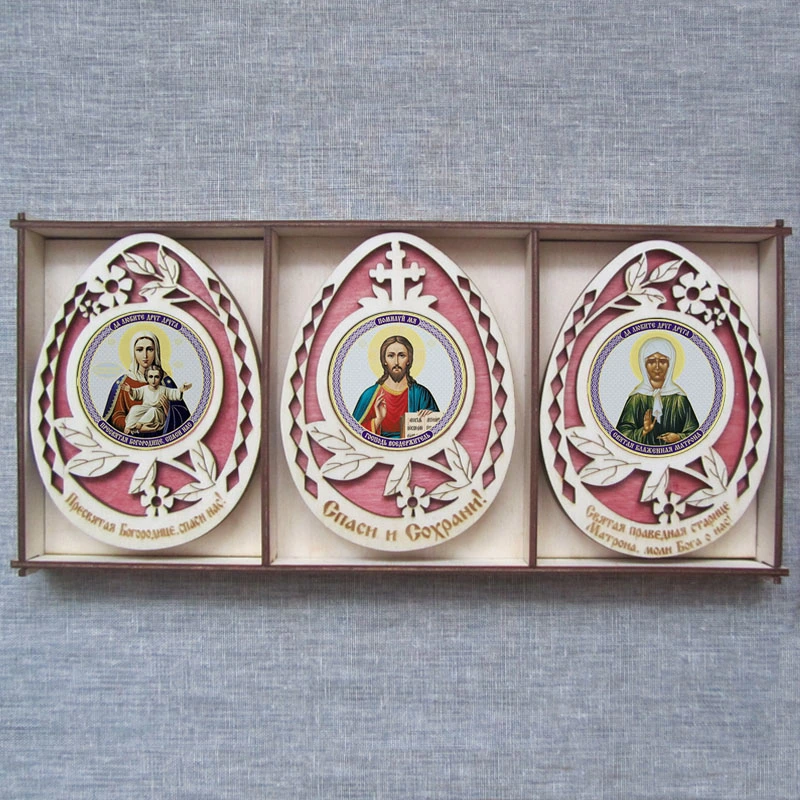 - 3 яица + подставки под них, размер 8,5*11,5 (см).