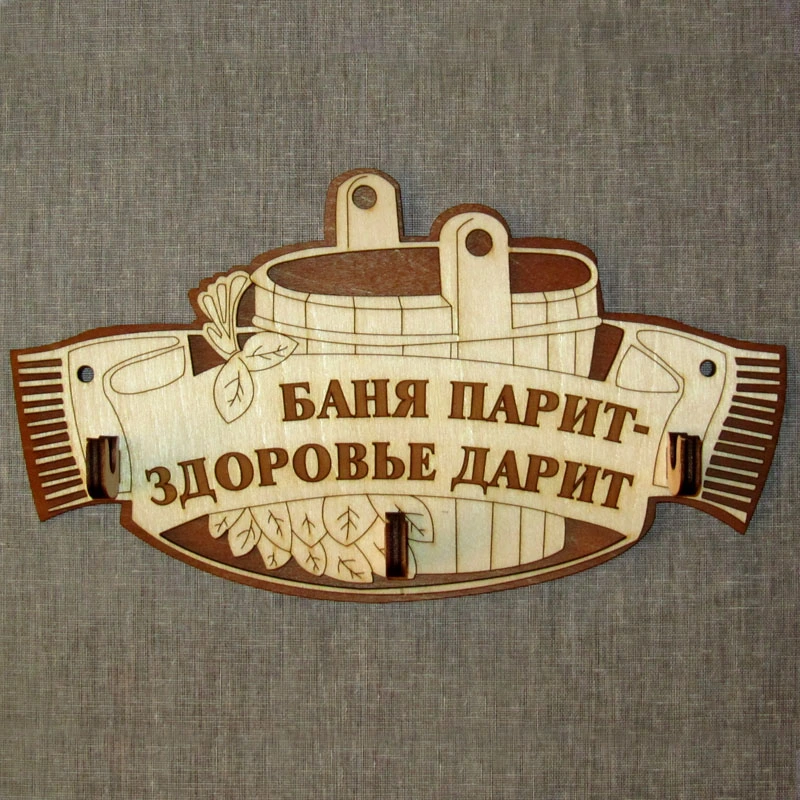 вешалка в баню из дерева на 3 крючка "Баня парит-здоровье дарит"